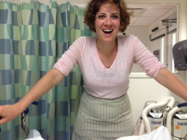 Here’s a picture of Michele beside at a hospital having a great time with a new mom.